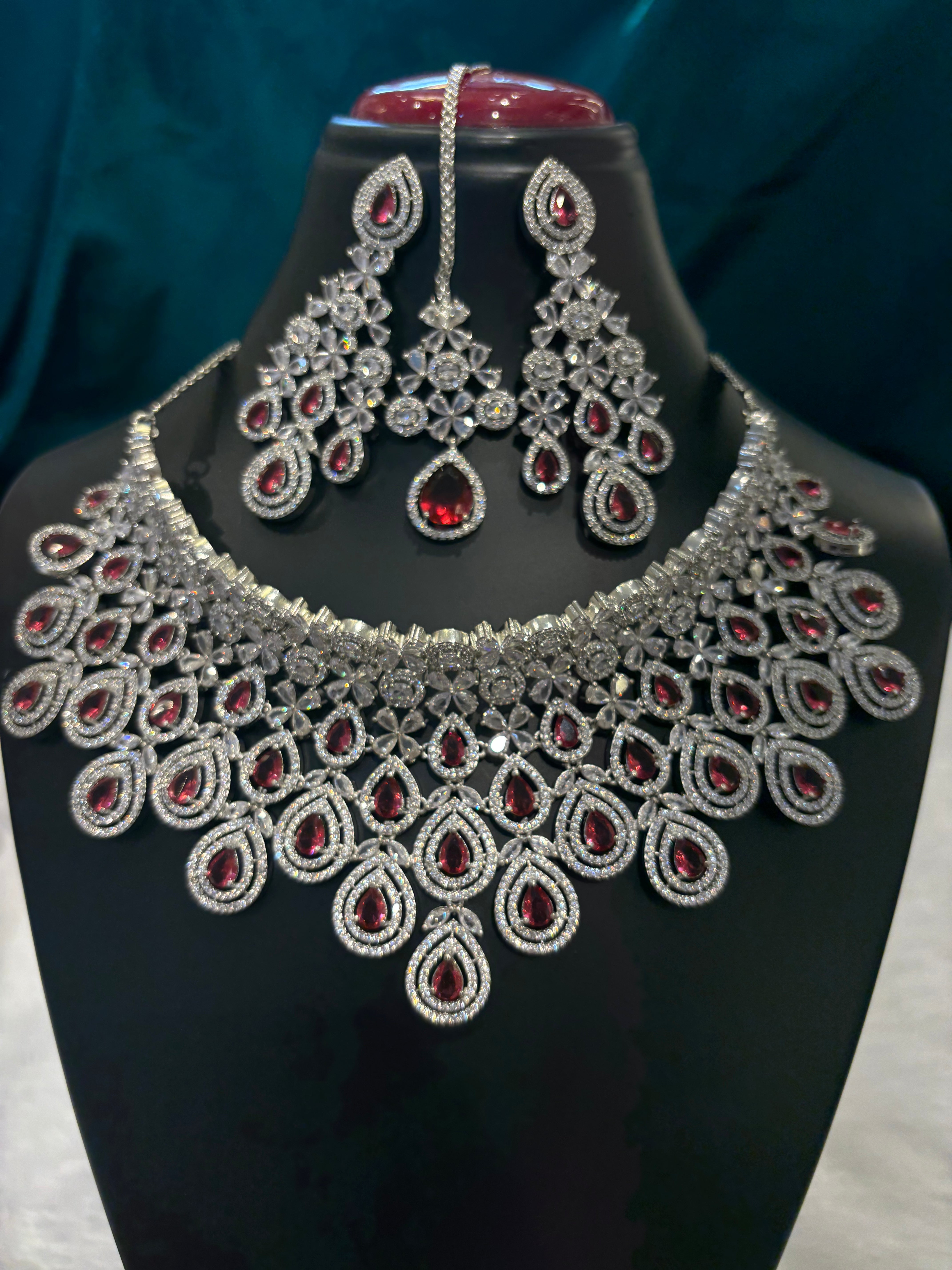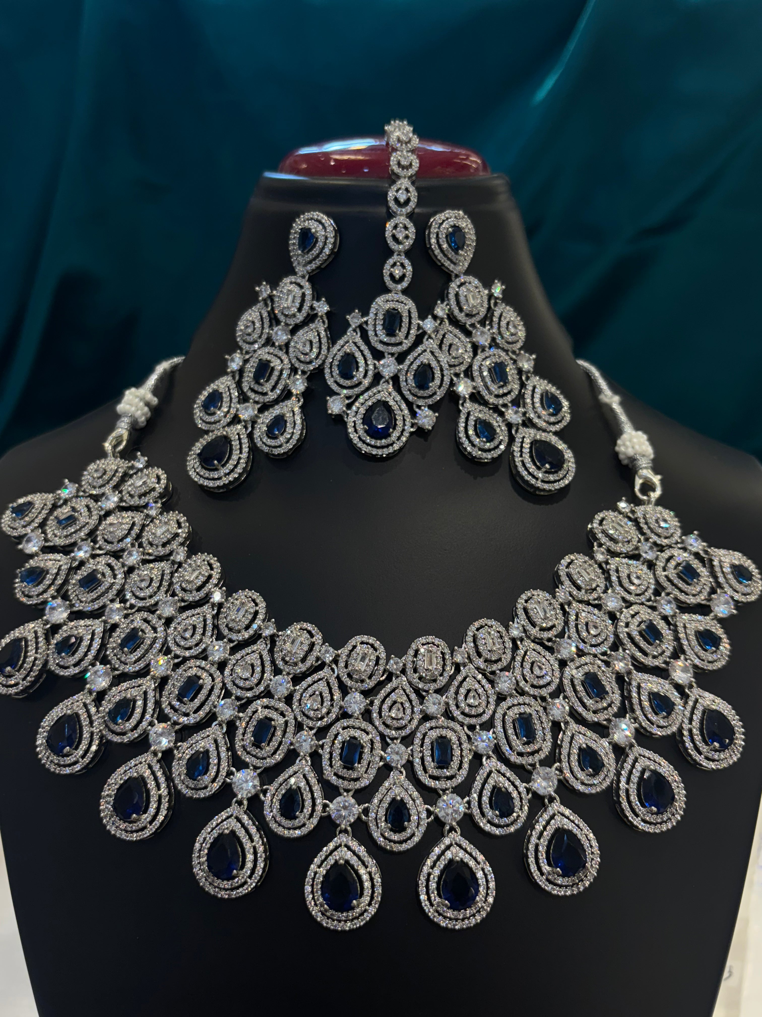 Make a grand entrance with this AD Heavy Tear Drop Bridal Choker Set, featuring sparkling AD stones in a stunning tear drop design. Perfectly crafted for brides and festive occasions, this choker adds a luxurious touch to your traditional attire. The set includes a matching choker necklace and earrings, offering a complete statement look. Its intricate detailing, heavy design, and radiant stones ensure you shine on your special day. Ideal for weddings, receptions, and festive celebrations, this set is a must-have for elegant bridal jewelry.