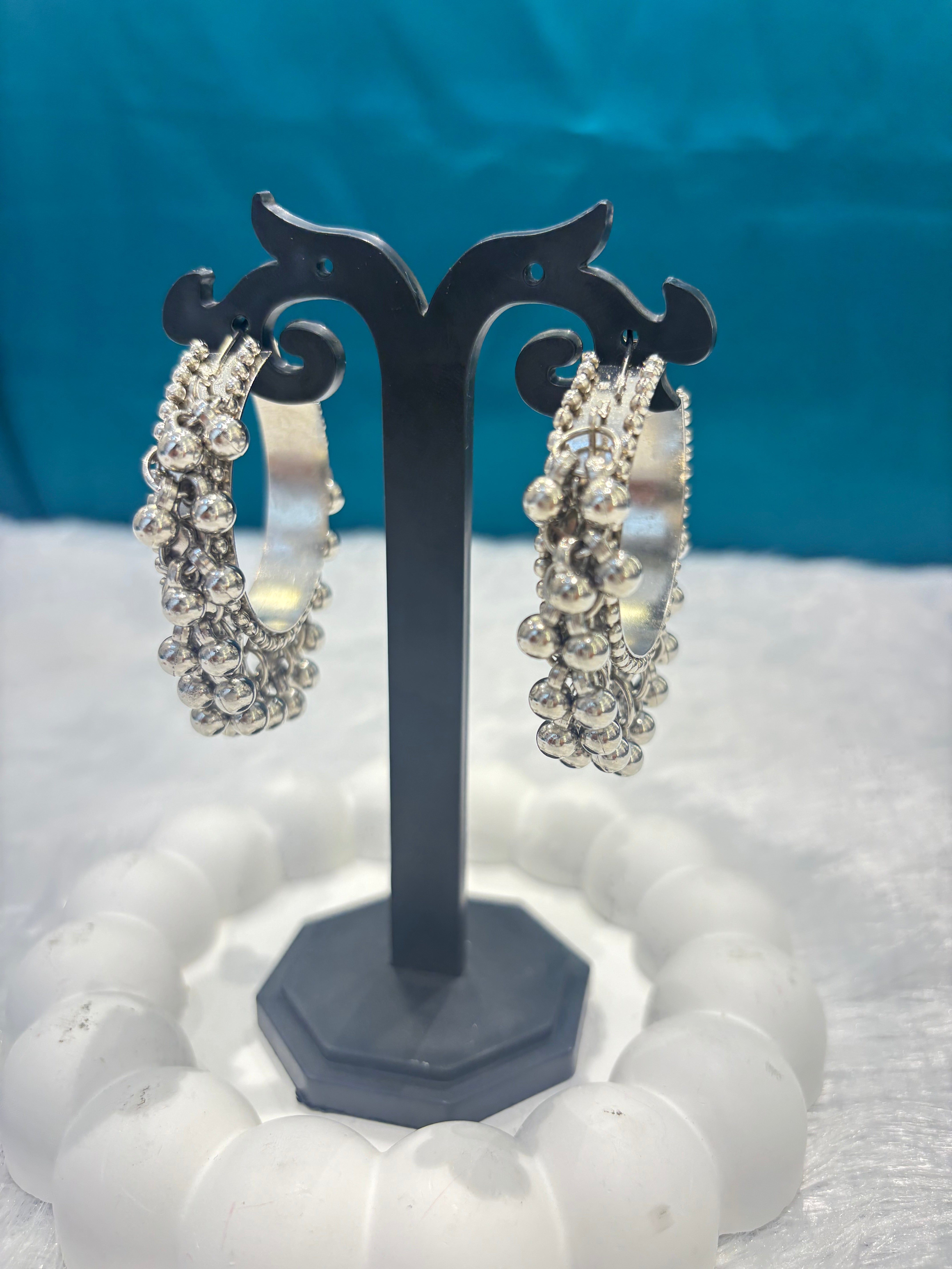 Elevate your everyday style with these Oxidized Silver Hoop Earrings. Featuring a bohemian oxidized finish, these hoops bring a chic ethnic touch to any outfit. Lightweight and versatile, they pair beautifully with kurti, sarees, or western wear, making them perfect for daily wear, college, or casual outings.