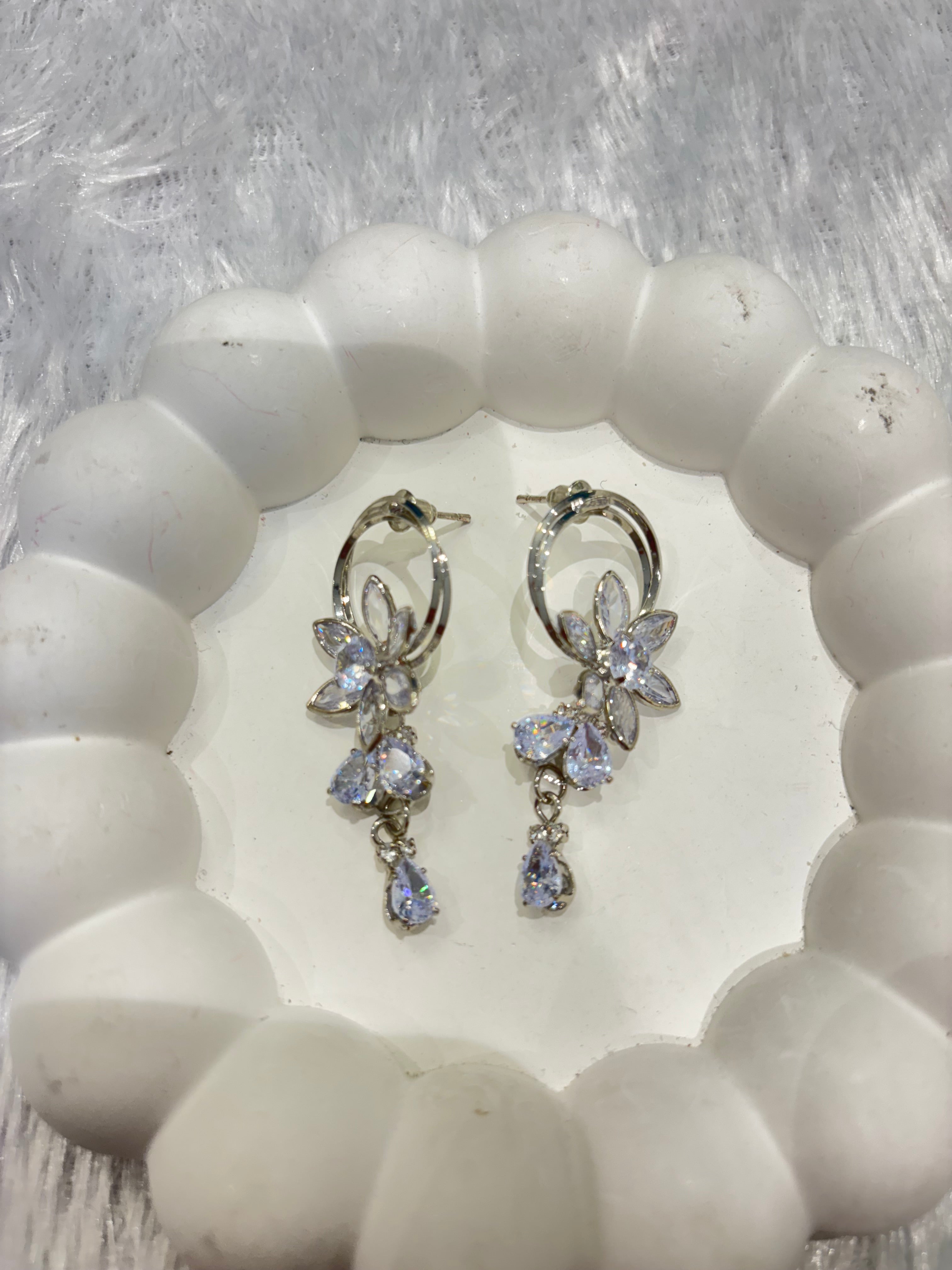 Add a touch of sparkle and sophistication with our Floral Crystal Hoop Drop Earrings. Featuring delicate floral motifs encrusted with shimmering crystals and teardrop dangles, this pair beautifully balances elegance with modern chic. Perfect for weddings, festive occasions, and glamorous evenings, these earrings are a must-have for those who love timeless statement jewelry. Lightweight yet eye-catching, they complete your look with effortless charm.
