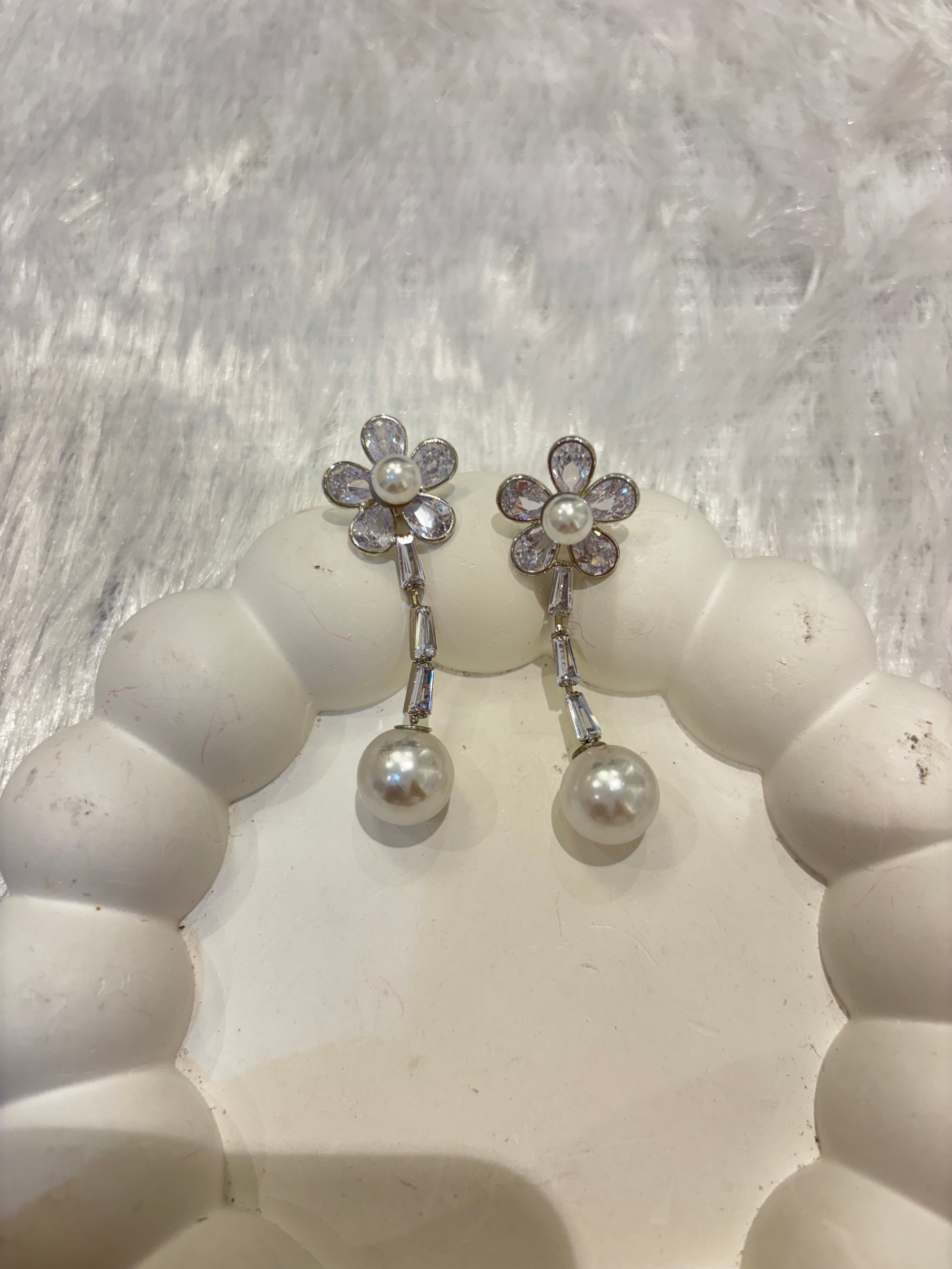 Grace meets elegance with these Floral Pearl Drop Earrings, designed with sparkling crystal-petaled flowers and a lustrous pearl drop. The delicate combination of floral charm and timeless pearls makes this pair perfect for weddings, festive occasions, and sophisticated evening looks. Lightweight yet classy, these earrings add a refined touch to both traditional and modern outfits.