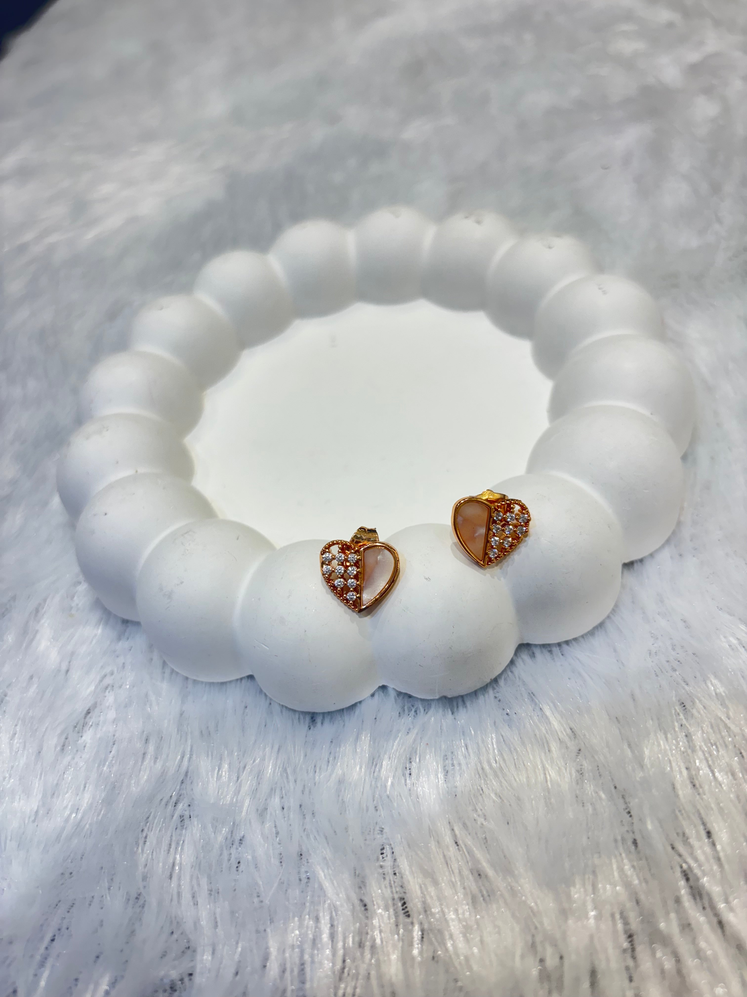 Add a touch of sparkle and romance to your everyday look with these gold-plated heart stud earrings. Designed in a chic half-and-half style, one side is encrusted with dazzling CZ stones while the other side shines in sleek gold, creating the perfect balance of elegance and charm.