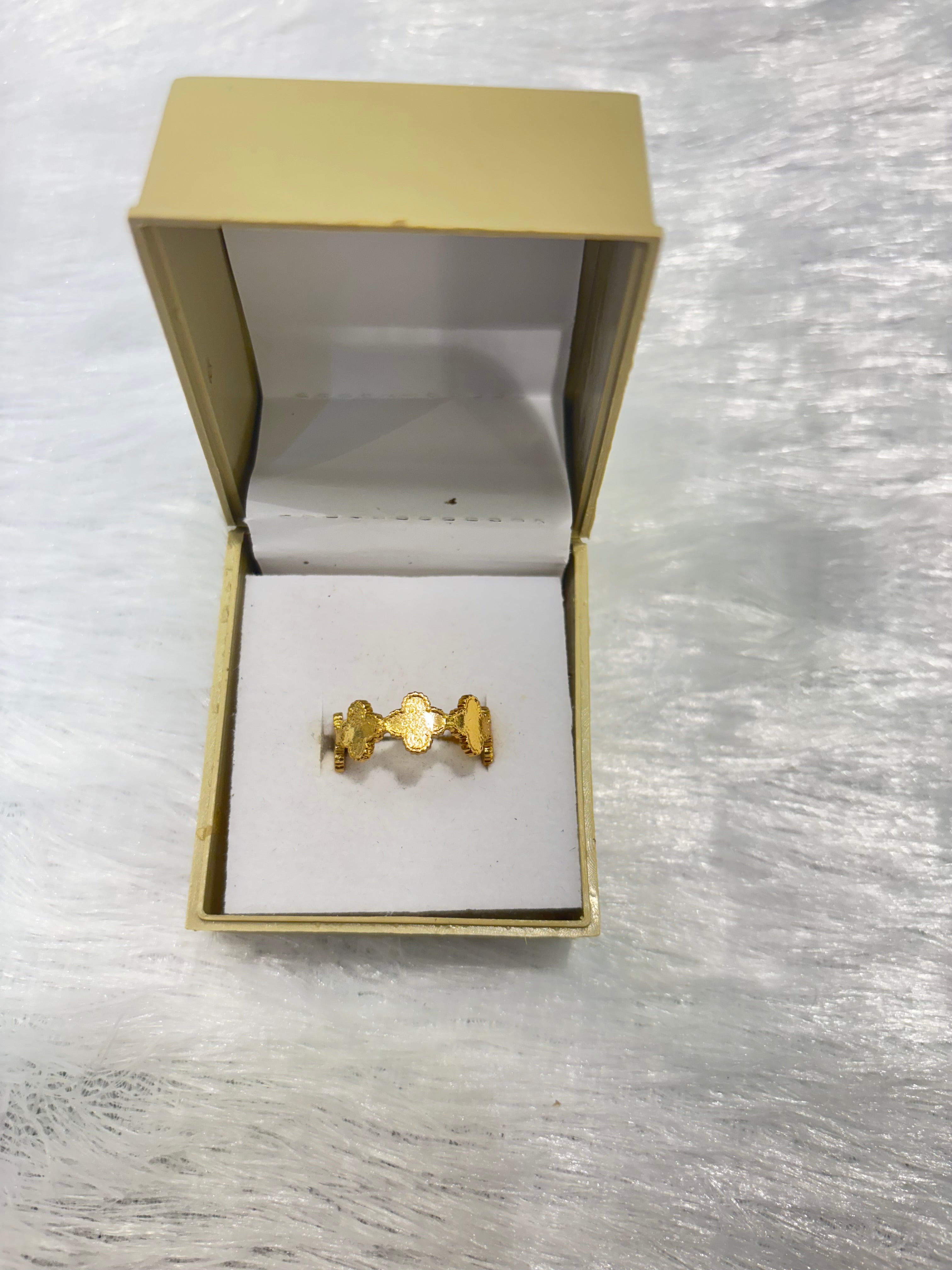 Bring a touch of charm and elegance with this golden clover band ring. Designed with delicate floral-inspired motifs, this ring symbolizes luck, positivity, and timeless beauty. Its versatile style makes it perfect for daily wear, festive looks, or as a thoughtful gift. Lightweight and elegant, this piece pairs beautifully with both ethnic and modern outfits, making it a must-have statement ring for women.