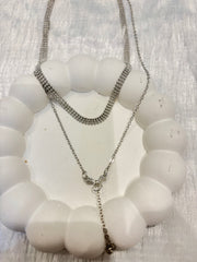 Elevate your style with this layered silver plated necklace, designed with multiple delicate chains for a trendy stacked effect. The sleek combination of textures creates a versatile piece that can be worn solo for a minimal chic look or layered with other necklaces for a bold statement. Perfect for parties, casual outings, or gifting stylish fashion jewelry lovers.