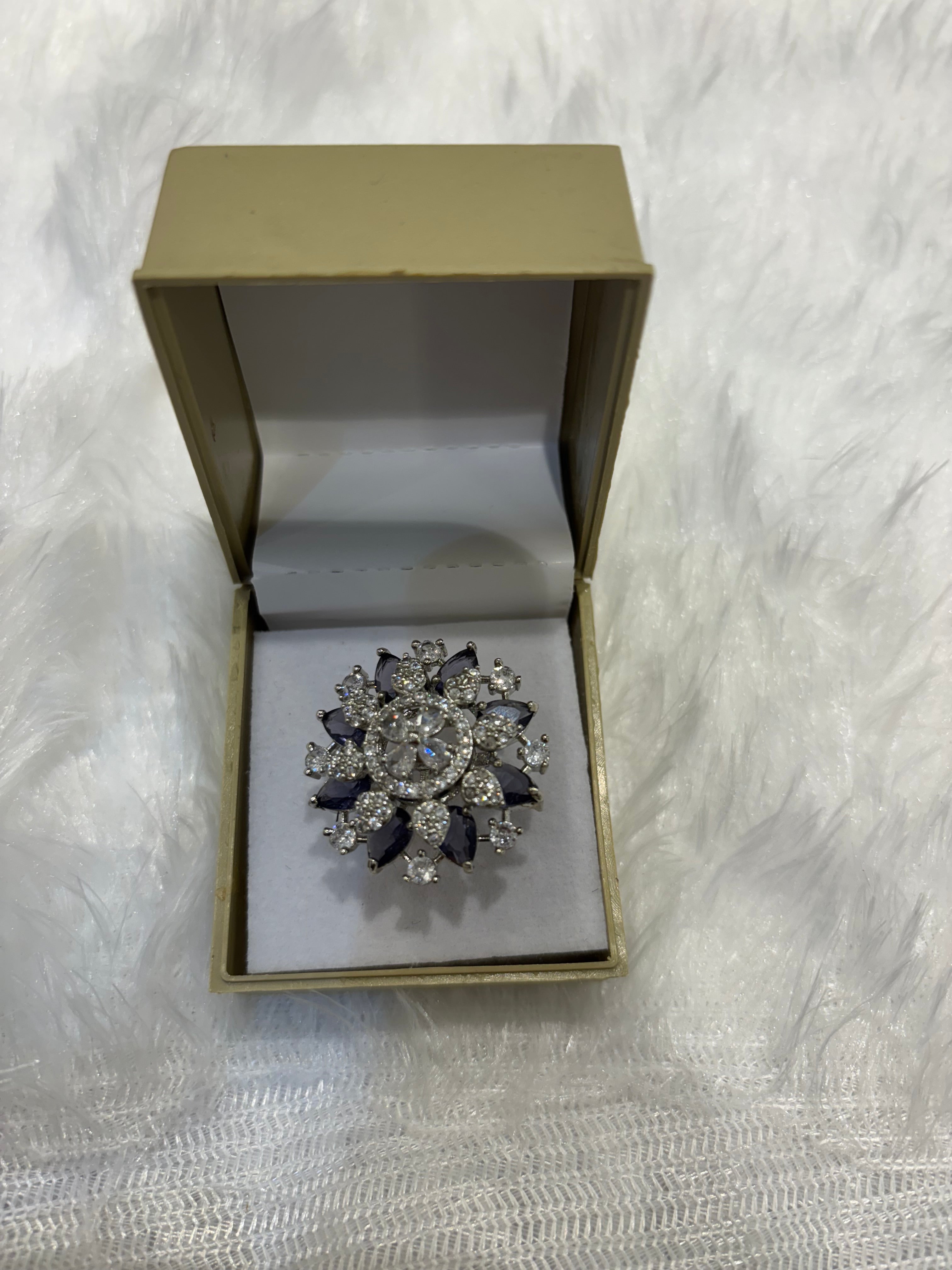 Shine with sophistication in this luxurious AD round flower ring, featuring a dazzling floral design encrusted with premium American Diamonds. Perfect for weddings, festive occasions, and glamorous parties, this adjustable ring blends timeless elegance with a sparkling statement, complementing both ethnic and contemporary outfits.