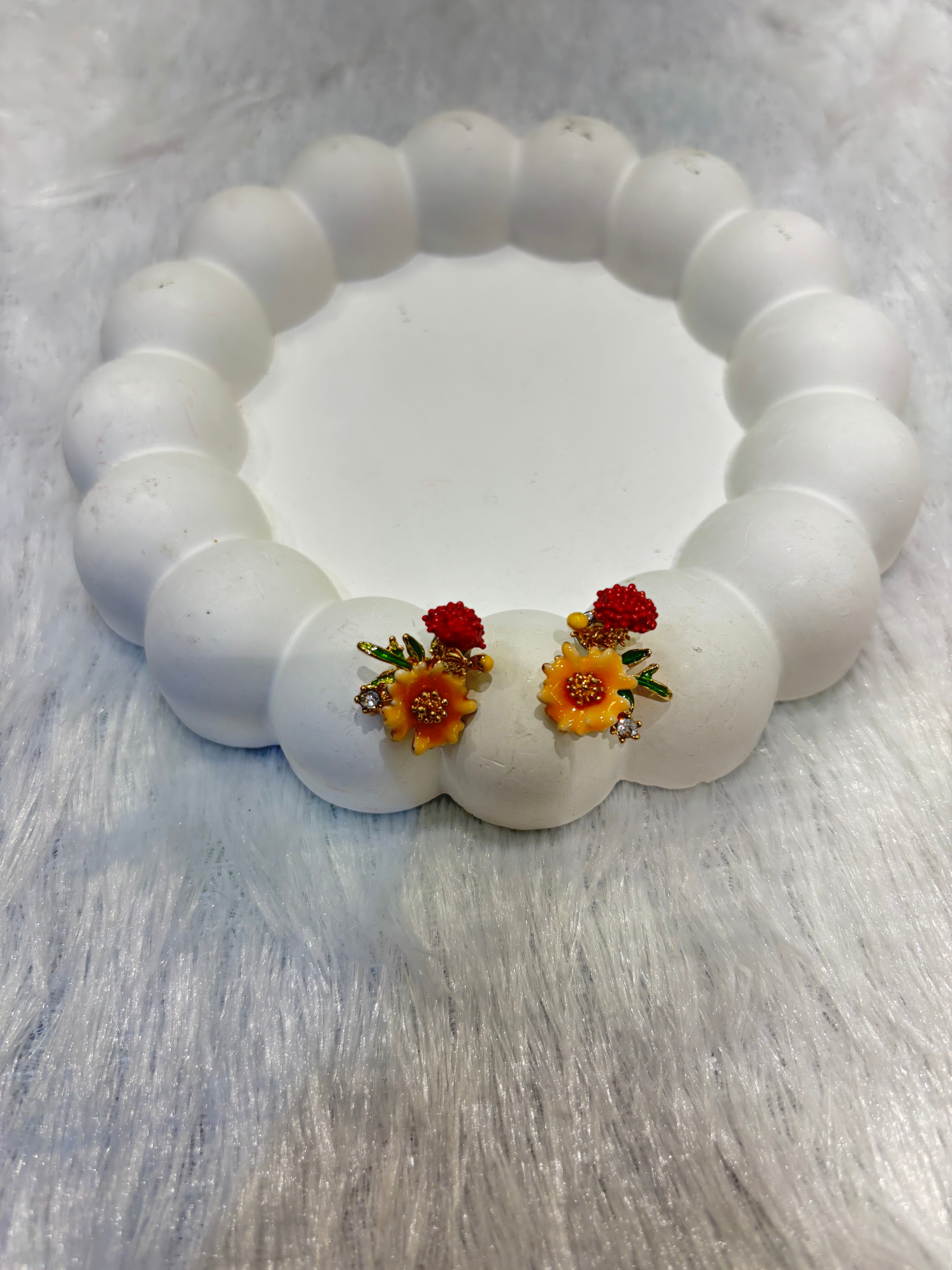 Bring a fresh pop of color to your style with these multicolor enamel floral stud earrings. Designed with bright yellow and red flowers, accented with green enamel leaves and tiny CZ stones, these studs are perfect for adding a cheerful and trendy vibe to your look.