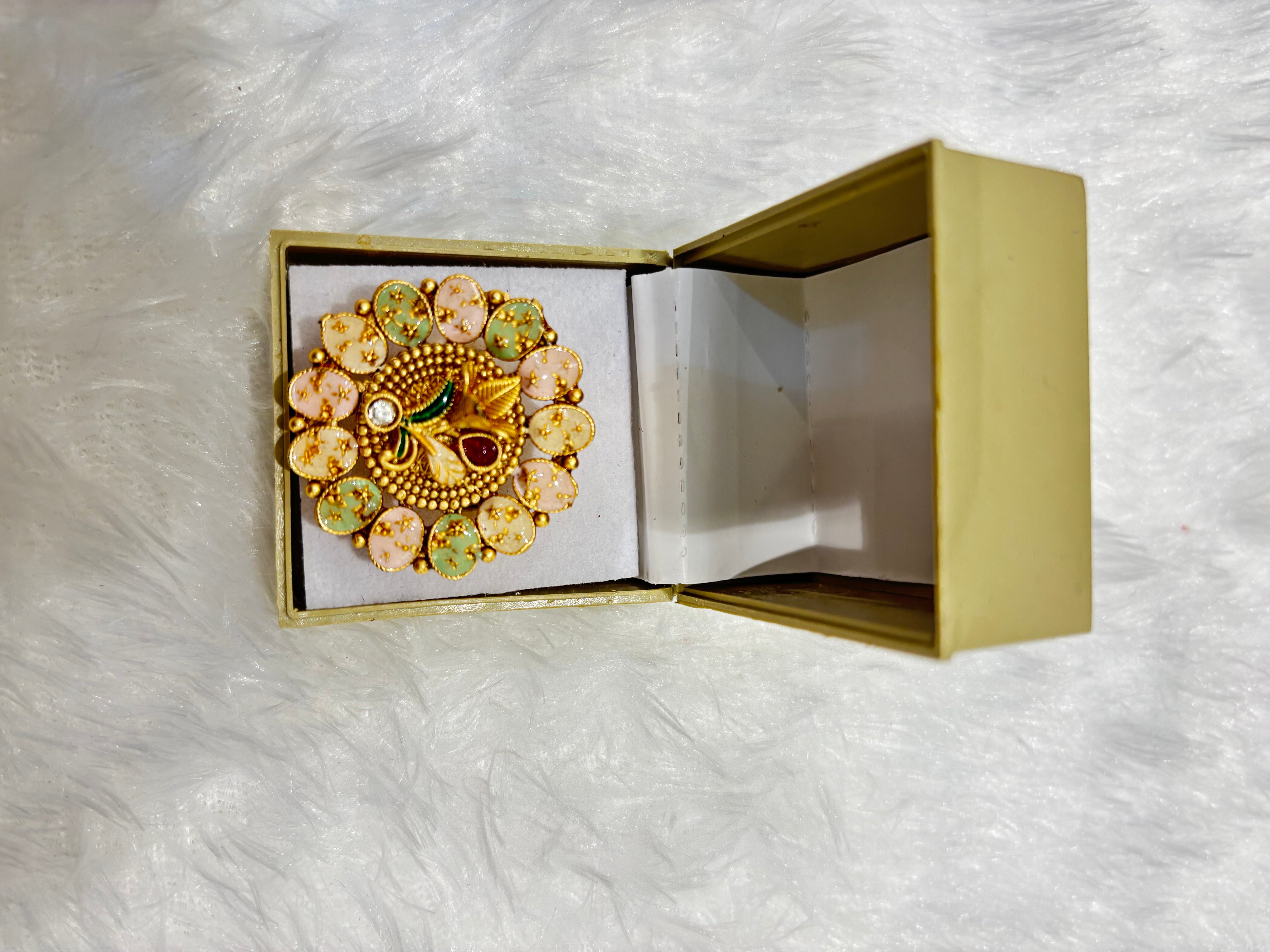 Add a pop of color with this teal and pink circular traditional ring, featuring vibrant teal and pink stones set in an intricate circular design. Perfect for weddings, festivals, and ethnic occasions, this adjustable ring combines classic traditional craftsmanship with modern elegance, making it a striking statement piece.