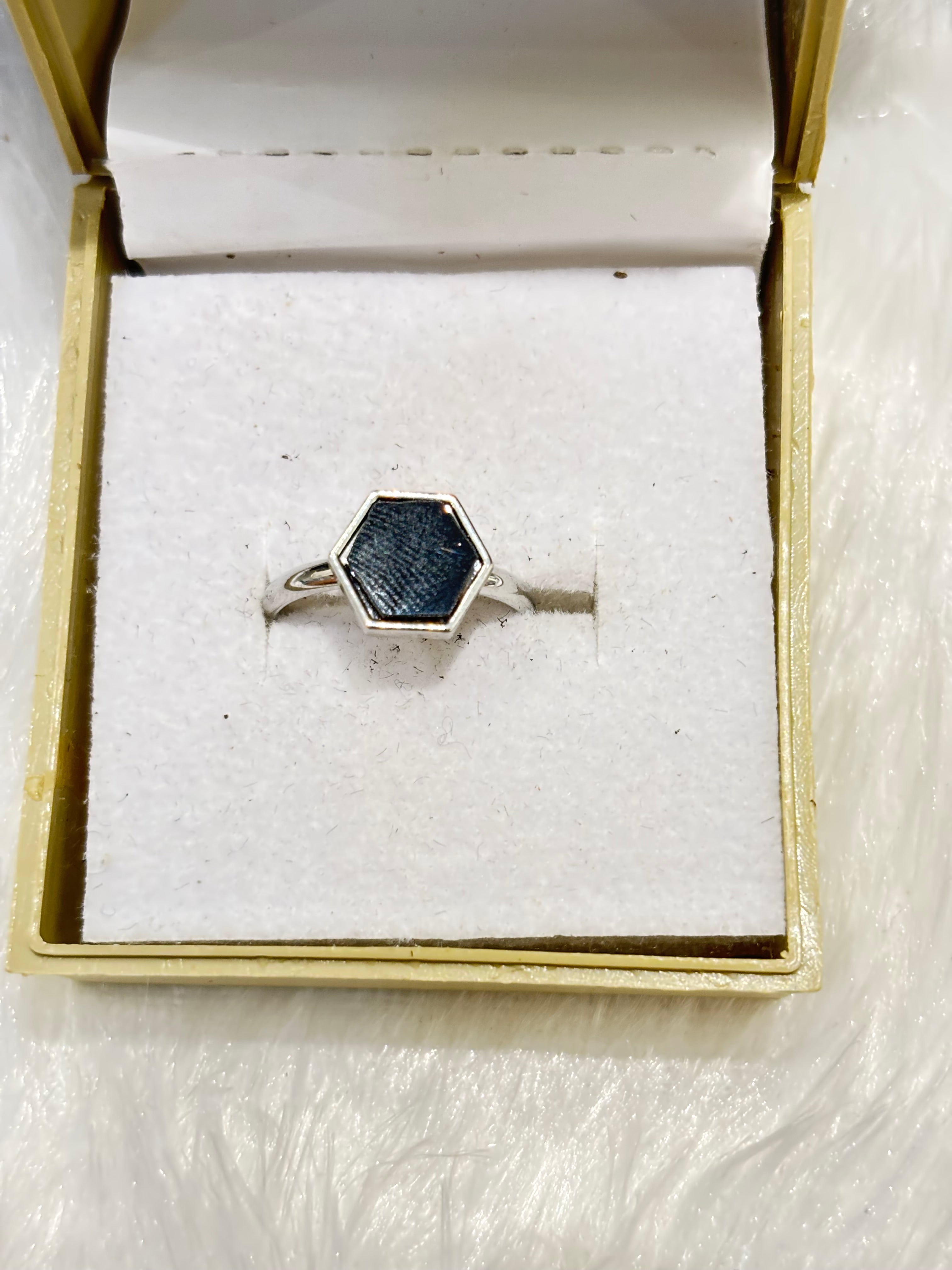 Make a bold style statement with this black hexagon ring, featuring a sleek geometric six-sided design in a glossy black finish. With its adjustable band, this unisex accessory offers a perfect fit and a contemporary edge, ideal for pairing with both casual and formal outfits.