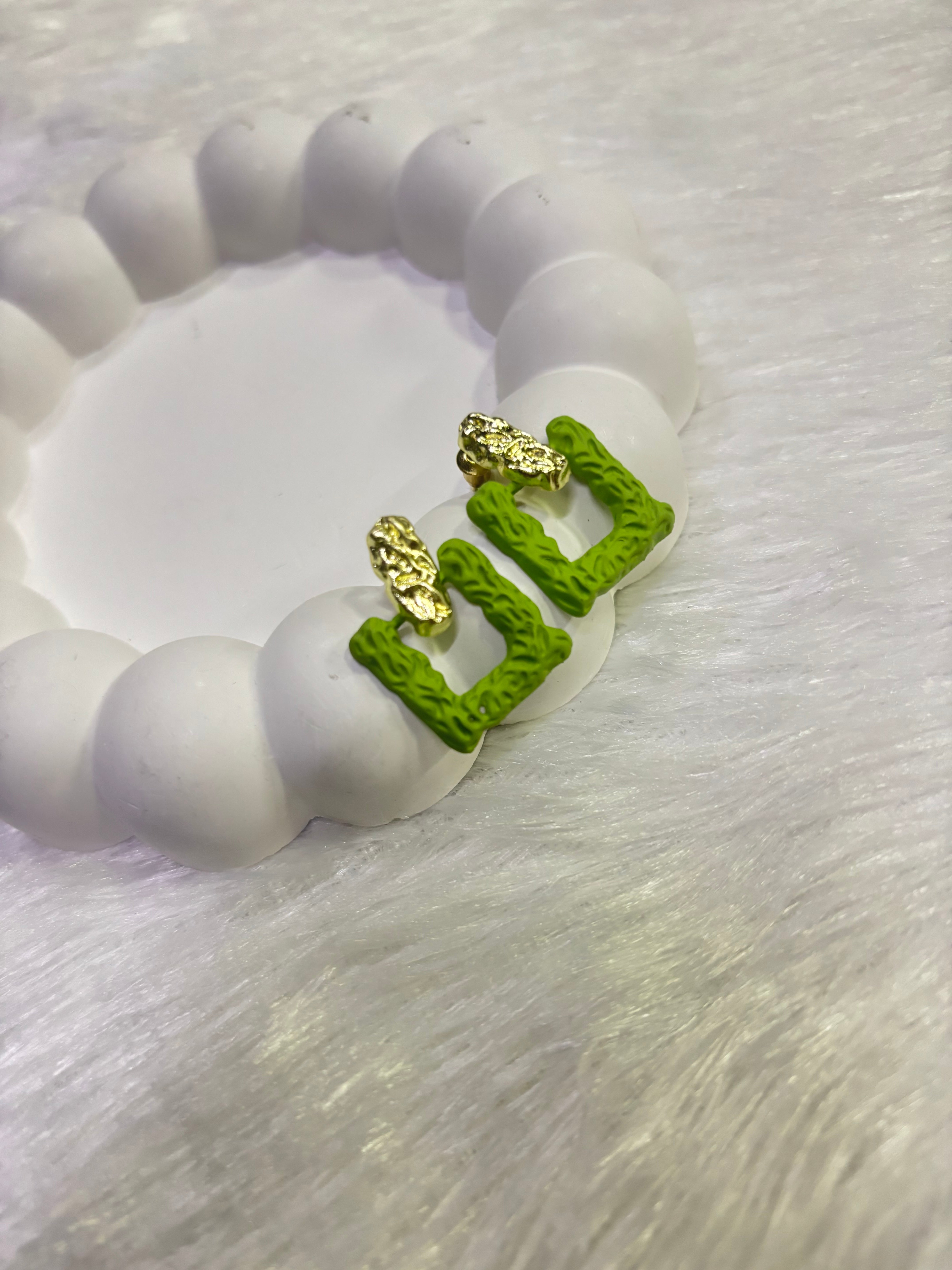 Add a bold twist to your look with these unique green block earrings. Featuring a textured matte green design paired with a shiny gold nugget top, these statement earrings are the perfect blend of quirky and chic. Lightweight yet eye-catching, they are ideal for casual outings, parties, and festive occasions where you want to stand out with something different.