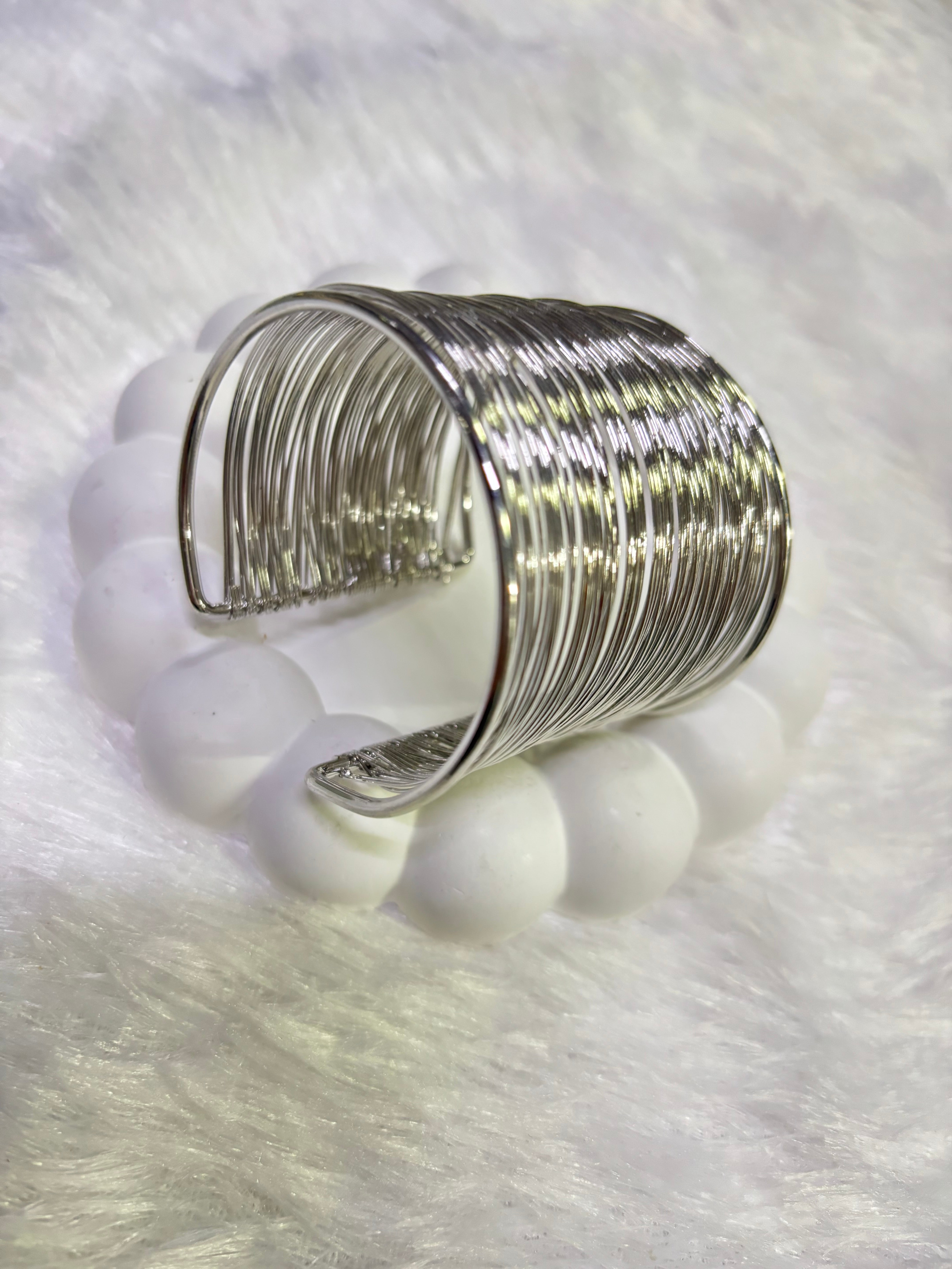 Make a bold style statement with this textured wire kada set, featuring wide cuff bangles in gold and silver finishes. Designed with layered wire detailing, these kadas bring a perfect balance of modern elegance and edgy charm.