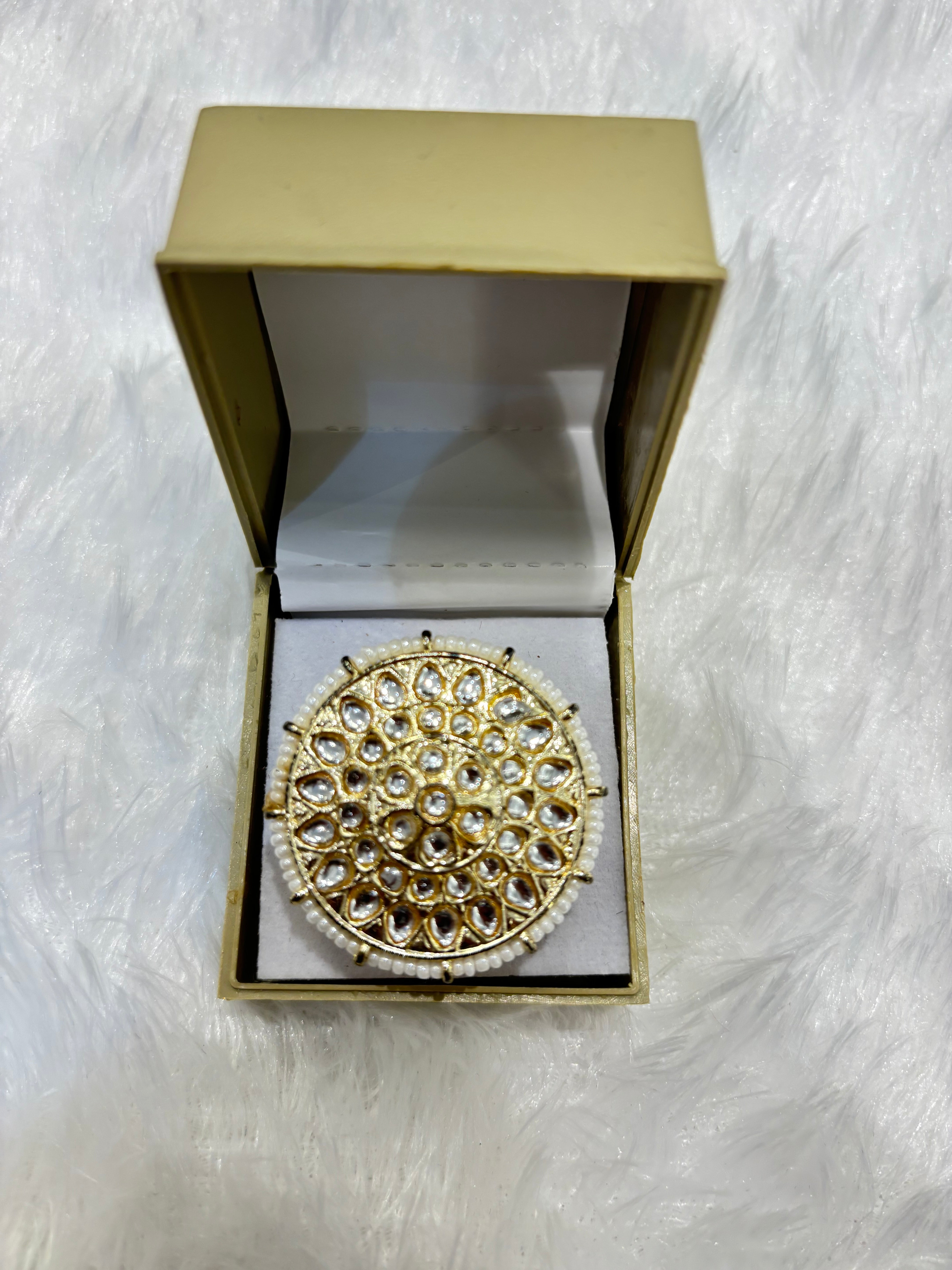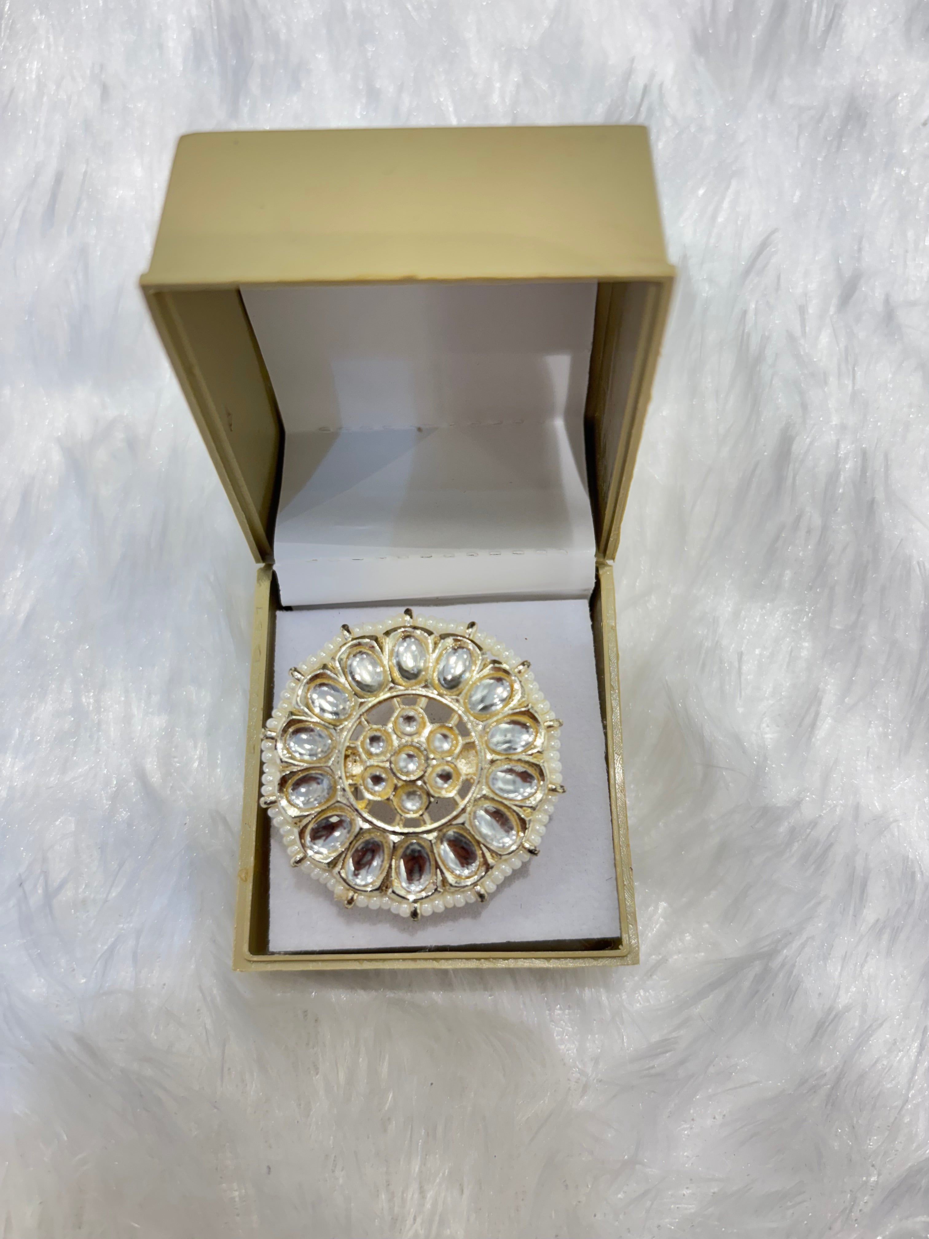 Enhance your elegance with these white pearl circle rings, featuring lustrous pearls arranged in a timeless circular design. Perfect for weddings, festive occasions, and everyday ethnic wear, these adjustable rings offer a sophisticated blend of classic charm and modern style, making them a versatile statement accessory.